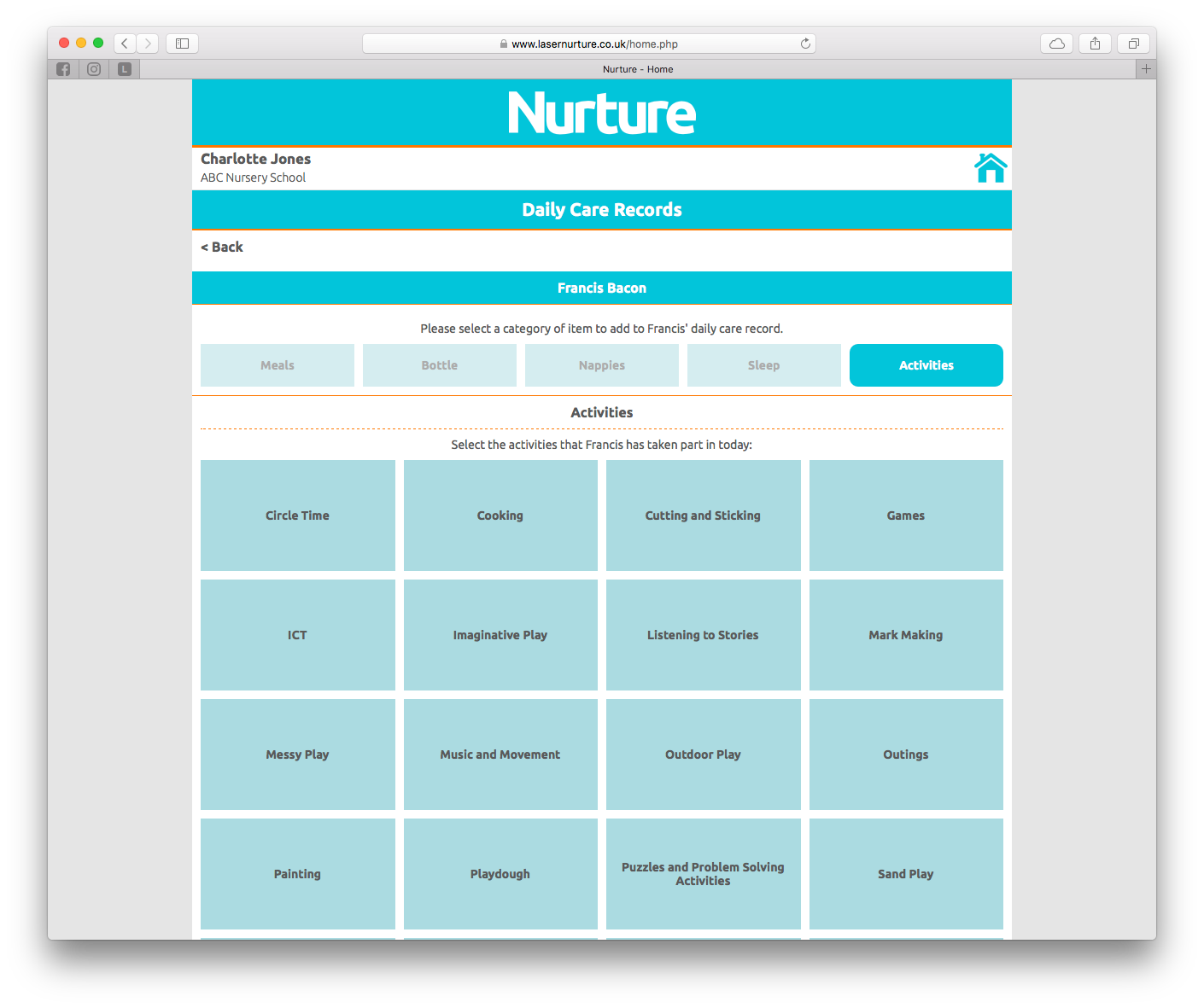 This enables you to easily record information about a child's day and the activities they have taken part in, sending them by email to parents at the click of a button.