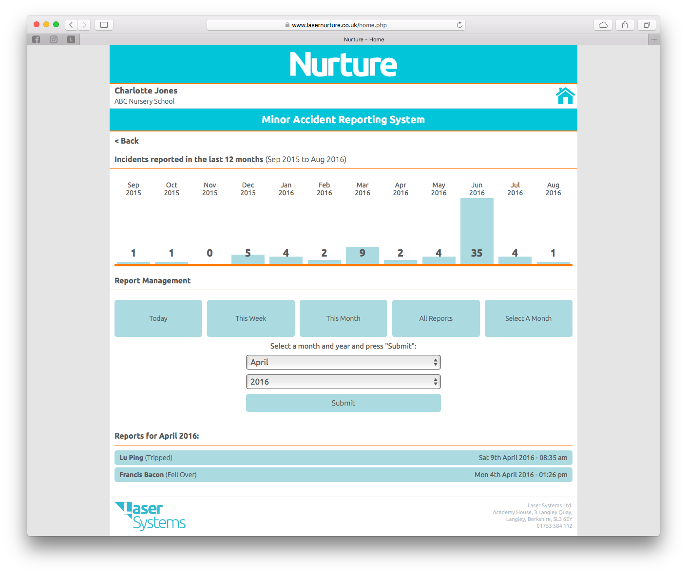 No longer will you need to use a paper form to record a child's accident. Now you can enter the details into your Nurture quickly and simply, enabling you to send details to parents, produce records for inspectors and analyse trends helping you make your nursery or childcare setting safer.